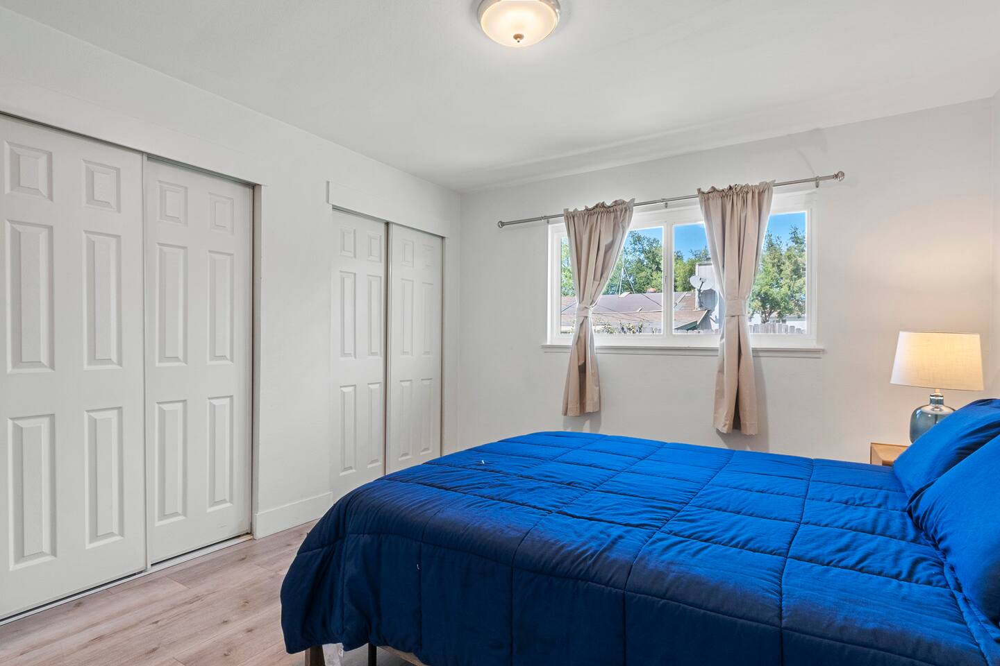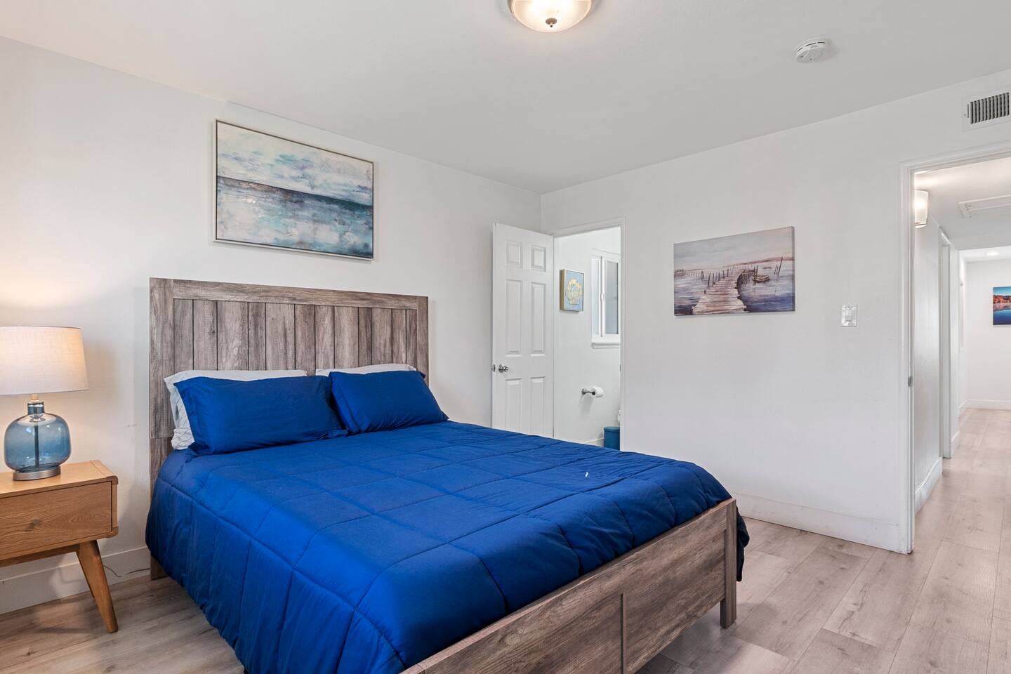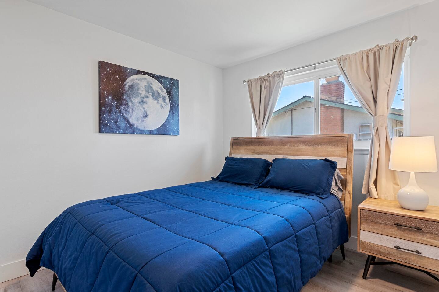 Welcome to a well-appointed 3-bedroom, 2-bath home located in a peaceful neighborhood—ideal for working professionals, small families, or traveling medical staff seeking comfort, convenience, and privacy. The spacious open-concept living and dining area features a white-washed brick fireplace, large windows with natural light, and durable laminate wood-style flooring throughout. Recessed lighting and a soft, neutral palette create a clean and calming environment. 🍳 Kitchen Highlights Quartz countertops with peninsula seating Stainless steel gas stove and refrigerator Ample cabinetry and under-cabinet lighting Fully stocked with essentials for extended stays 🛏️ Three Comfortable Bedrooms Each bedroom is furnished with a queen bed, blackout curtains, and generous closet space—ideal for restful sleep and privacy. 🛁 Two Updated Bathrooms Modern vanities, glass-door showers, and sleek finishes offer a hotel-like experience. 🌿 Outdoor Space Enjoy a private backyard with a concrete patio and grassy area—perfect for morning coffee, working remotely outdoors, or evening unwinding. 🏠 Key Amenities ✔ 3 Queen Bedrooms with Fresh Linens ✔ 2 Full Bathrooms w/ Modern Finishes ✔ Open Living + Dining Room w/ Fireplace ✔ Updated Kitchen w/ Quartz Counters & Stainless Appliances ✔ Central Heating & Air Conditioning ✔ In-Unit Washer & Dryer ✔ Fully Fenced Backyard ✔ No Garage Access (driveway + street parking available) 🚫 House Rules & Info 🚫No Garage Access Exterior-only security cameras in place for safety NoiseAware monitors help ensure a quiet atmosphere (no audio recorded, no indoor cameras) This thoughtfully updated home offers a balance of style and functionality with easy access to parks, restaurants, grocery stores, and major hospitals. Perfect for extended stays, relocations, or seasonal professionals. ✨ Book your stay and settle into comfort and peace.