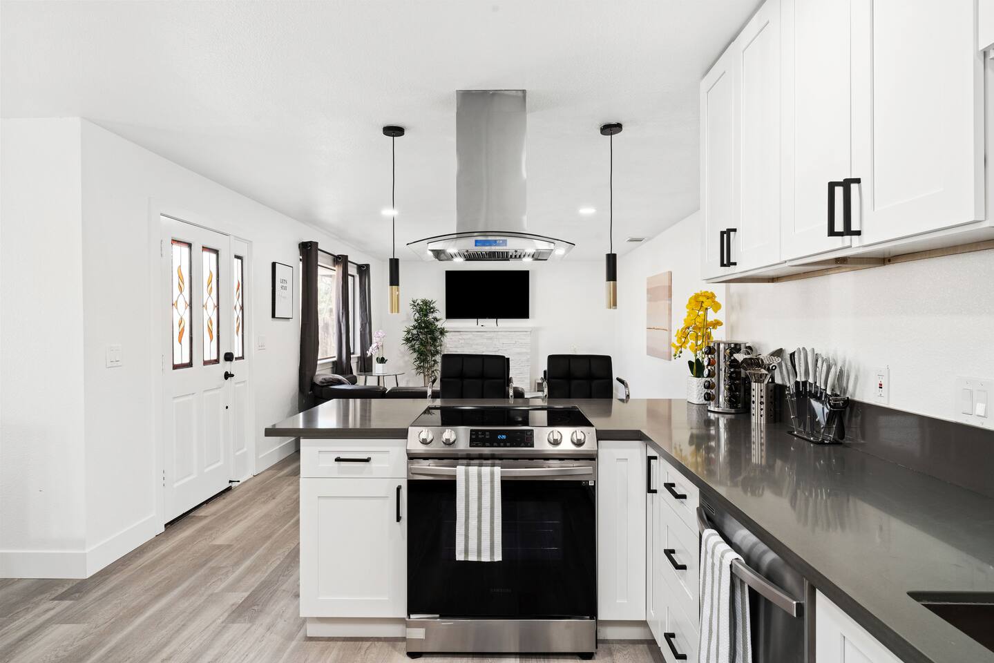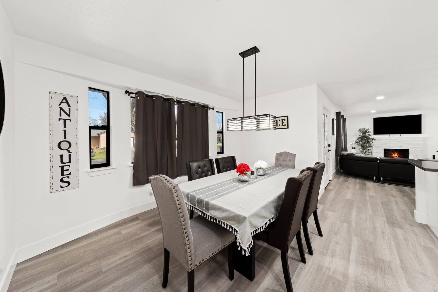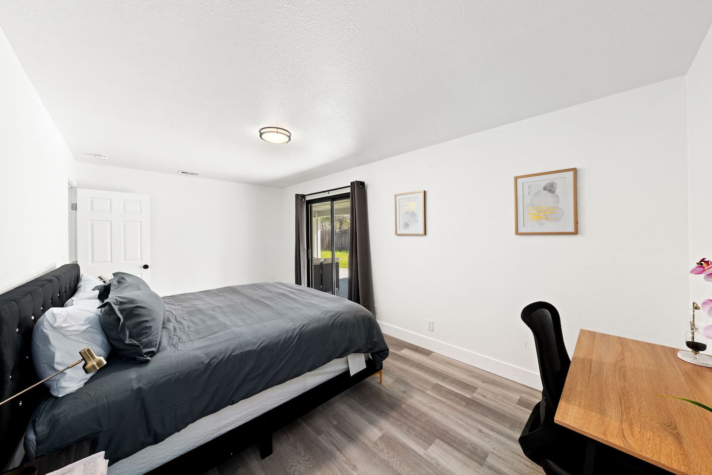 If you are looking for a spotless place with all you need, look NO further! This newly updated home is in a quiet and family friendly neighborhood near to shopping, entertainment and more. This gorgeous fully remodeled modern home has 3 bedrooms with 2 queen size beds and 1 king size bed (in the master), respectively, 2 full bathrooms, with all you need to have an amazing stay. All the mattresses are pillow top side to have a great quality sleep. It's got a dining area for 6, a Modern newly updated kitchen and a bright full of natural sun light through the windows Living Room. We offer the entire home with your privacy in mind. Spacious open concept kitchen fully stocked with all cooking utensils, coffee, and tea. It is readily set up with high-end stainless steel appliances. You have a microwave, a range, a dishwasher, a sink to wash and cook a delicious meal for your family. There are plenty of seating at the dining room (sits 6), the kitchen counter with bar stools(sit 2), or the patio (sits 6) to enjoy meals, picnic, drinks with your family. Living area has one comfortable sofa bed and 65" UHD SMART 4K TV with Netflix and other free apps to enjoy quality time with your family or friends. One continuous brand new vinyl wood flooring throughout the house. There are no steps up and down the entire house. It is a single level home. Bathrooms are completely refreshed with Marble Calacatta Glossy Ceramic Marble wall tiles, LED lights, brand new vanities, and toilets. The whopping Master bedroom has one big king size bed, one office desk, chair, its own separate air register. Very nice quiet neighborhood, safe location for walking, with many stores and restaurants nearby. We are located close to the American River, kayak rentals, bike rentals and more. What we offer: ● Key-less entry with door code upon arrival. ● Free Internet Wi-Fi. ● Living Room Open floor plan living area with comfy leather sectional sofa couches and Ultra High Definition SMART Humongous 65 inch 4K TV with Netflix and other free apps to enjoy streaming movies with your family or friends. ● Outside Patio with a table for 6. ● Dining Room with a table for 6. ● Family Room: Sectional couches, coffee table, privacy curtains ● Spacious Kitchen: fully stocked with Coffee maker, K-cup coffee machine, toaster, oven, microwave, fridge, dishwasher, cookware, dishes, glassware, utensils, oil, salts, and peppers with high-end stainless steel appliances. ● Separate Mini Split Air Conditioning Systems in Sun Room and Master Bedroom (the entire house has central heat and air) ● Bathroom: Bathtub and stand-in shower, hair dryer, and shampoo/conditioner, soap. ● Master Bathroom: 2-Person stand-in shower with 2 shower heads for him and her together, hair dryer, and shampoo/conditioner, soap. ● Office Desk & Chair all in Master Bedroom. ● 3x Queen Size Beds: All the mattresses are pillow top queen sizes to offer a great night of sleep. ● Laundry Room (for 3+ days): washer, dryer, iron, iron board, laundry detergent and softener. ● Two parking spaces on the driveway and ample free street parking. ● High tech heat/AC vents, high tech smoke and carbon monoxide detectors installed. ● High-quality vinyl water proof flooring throughout the all house. ● Very nice neighborhood, many stores and restaurants nearby. Please Note: We are committed to Rent Responsibly standards to ensure you have a peaceful, safe and memorable stay with us. Local ordinances ensure you and our neighbors enjoy the peace and beauty of our community. We are dedicated to protecting our guests and neighbors from bothersome levels of noise and too many vehicles. This home is equipped with NoiseAware technology. NoiseAware is 100% privacy compliant and monitors decibel levels living areas and outside to protect you from noise complaints. This home may also have security cameras to ensure parking does not exceed legal requirements. We care about your safety and security. We do not permit any video security devices inside our homes.