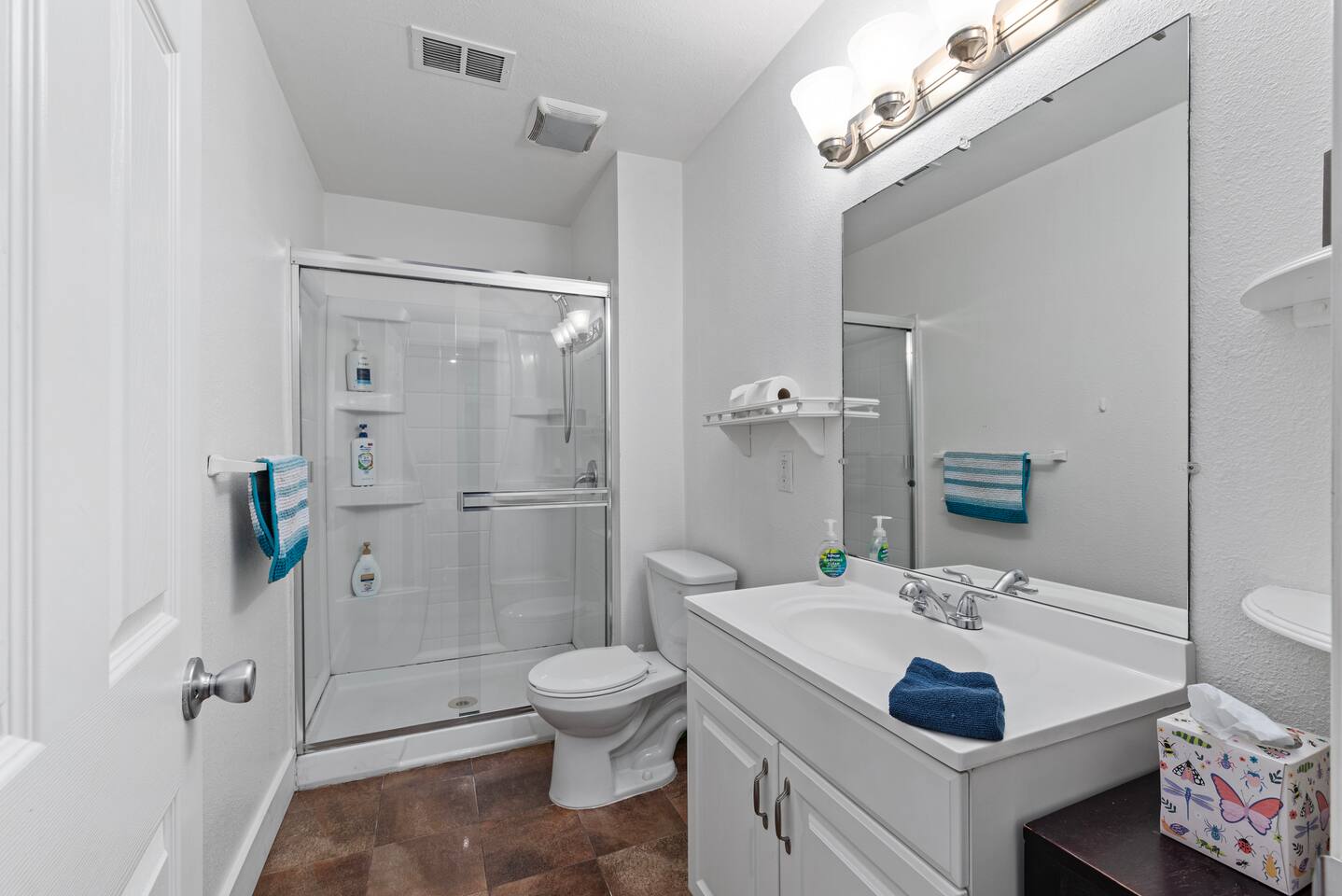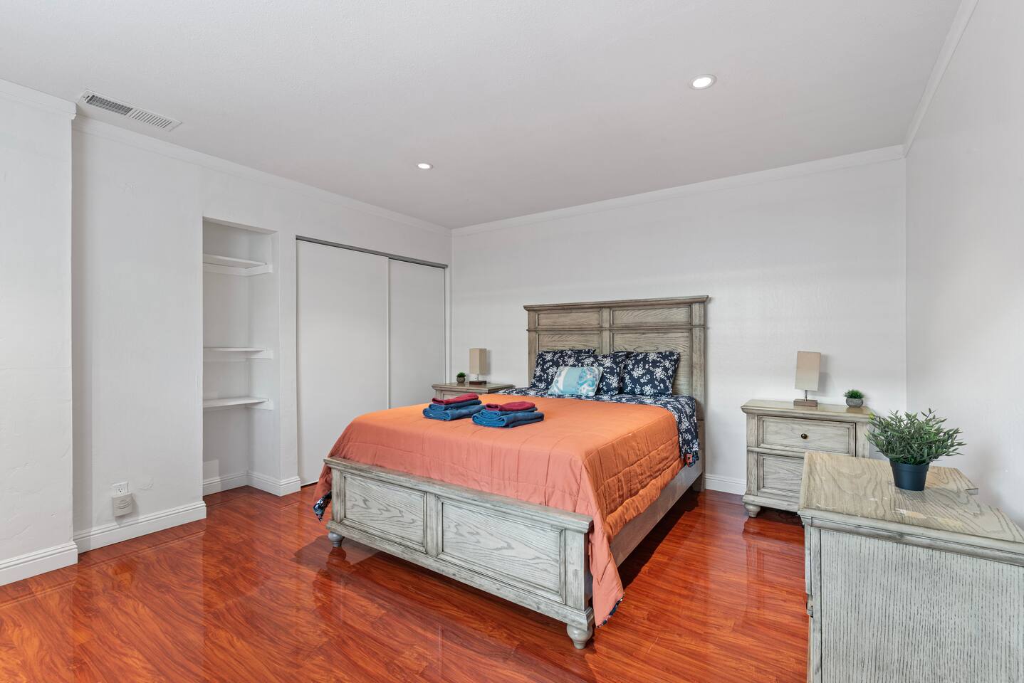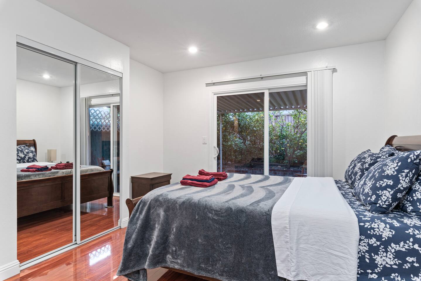 Living Area: -Guests have access to the whole house minus the garage. - 4 queen sized brand new beds with luxurious mattresses - Fully-Equipped Kitchen with dishwasher, refrigerator, oven, microwave, toaster and coffee maker - Sunny patios and balconies - Blackout shades - Spacious Closets - 55" HDTV with cable TV - 105Mb High-speed Internet and Wi-fi and Chromcast connection - Central AC and Heat - In-Home washer and dryer - All the bathroom amenities including body wash, shampoo, conditioner, face soap, lotion and hair dryer - Iron and board available