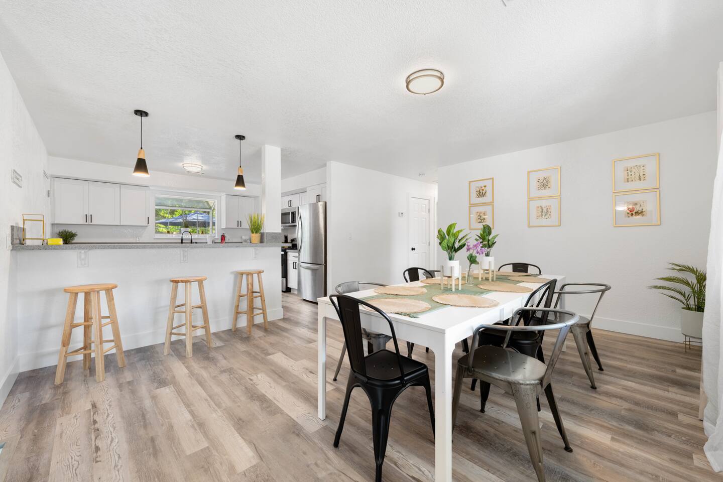 Welcome to our exquisite urban oasis! Our newly remodeled interior features stylish design and vibrant colors that create a warm and welcoming atmosphere. Every detail has been carefully considered to ensure your comfort and relaxation in this one-of-a-kind space. Our modern kitchen is a culinary dream, with an island that seats up to 3 people. Whether you're whipping up a quick snack or preparing a gourmet meal, you'll love the functionality and convenience of this space. And when it's time to unwind, our cozy furnishings and serene ambiance will transport you to a world of tranquility. Our newly updated bathrooms provide a spa-like experience that will leave you feeling refreshed and rejuvenated. And for those who need to work during their stay, our fully equipped office desk and chair will help you stay productive and focused. But that's not all! Our yoga room is perfect for in-home exercise, while our stunning dining room, located next to the open kitchen, can seat up to 8 people for a memorable gathering. And with our prime location just minutes from major freeways, shops, parks, and restaurants, you'll have everything you need to make your stay unforgettable. Experience the ultimate in luxury, comfort, and style. We're also proud to offer a backyard oasis, complete with mature trees and a tranquil atmosphere that's perfect for relaxing, meditating, reflecting, or finding inspiration. Whether you're sipping coffee on the patio or soaking up the sun on the lawn, our backyard is a peaceful retreat from the hustle and bustle of the city. At our urban oasis, every detail has been carefully crafted to ensure your comfort and relaxation. With our stunning design, cozy furnishings, and serene ambiance, you'll feel right at home from the moment you arrive. Don't wait – book with us now and discover the magic of our urban oasis!